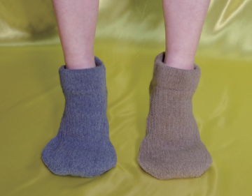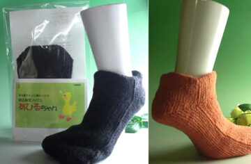 これを履いていれば、スリッパを履かなくても、床の冷えが伝わりにくく、暖かく過ごせます。あひるの足に似ているところから、「あひるちゃん」と名付けました。(^^)