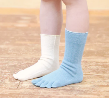 子供は裸足が一番です。でも寒さや危険防止、靴を履くときにはそんな訳にはいきません。しかし、靴下を履いているときも指を自由にさせてあげたい。そんな思いから子供用5本指ソックスを作りました。