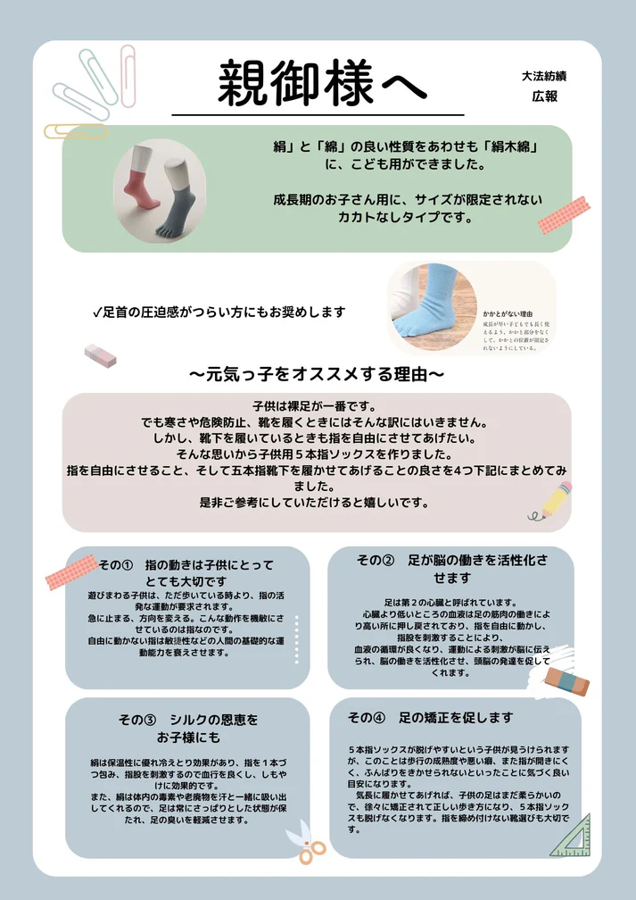 大法紡績「絹木綿」子供用5本指タイプ 「元気っ子」